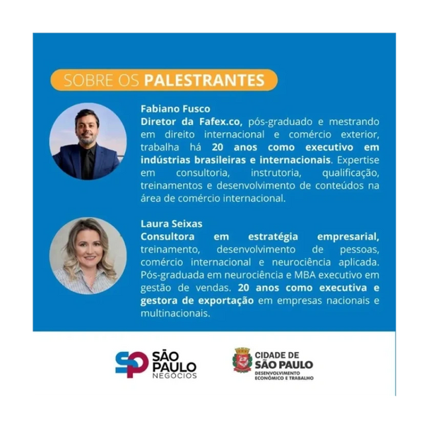 Realização dos webinars, referente ao lançamento do Manual Passo a Passo da Exportação, desenvolvido e elaborado pela Fafex.co na modalidade private label | marca própria para SPN e Prefeitura de São Paulo.